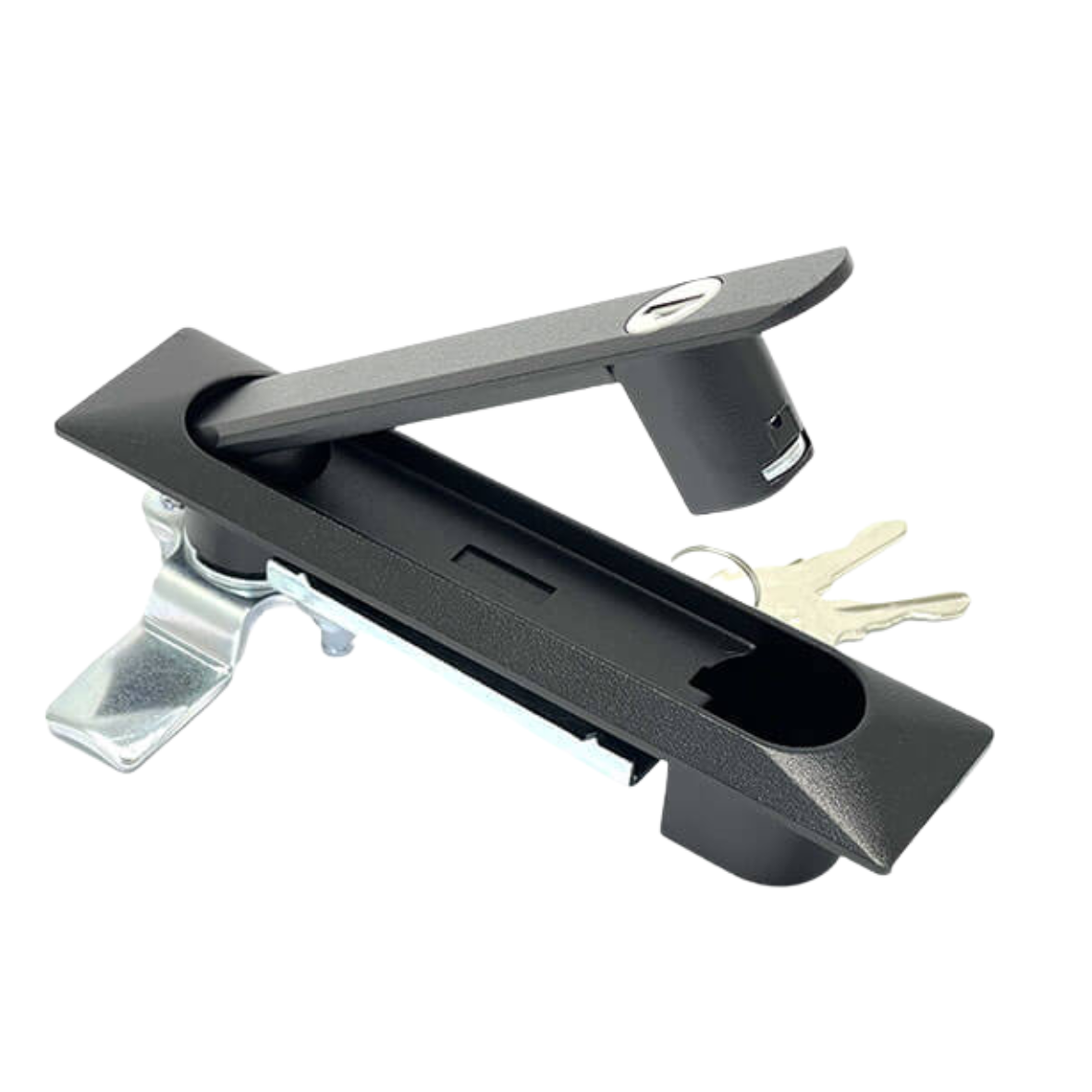 Projetado para aplicações industriais que exigem confiabilidade. O fecho lingueta escamoteável quarto de volta 160 mm oferece operação suave com abertura lateral direita e esquerda. Fabricado em Zamak ou Aço Inox, combina durabilidade com estética moderna em vários acabamentos (Cromado e Preto)