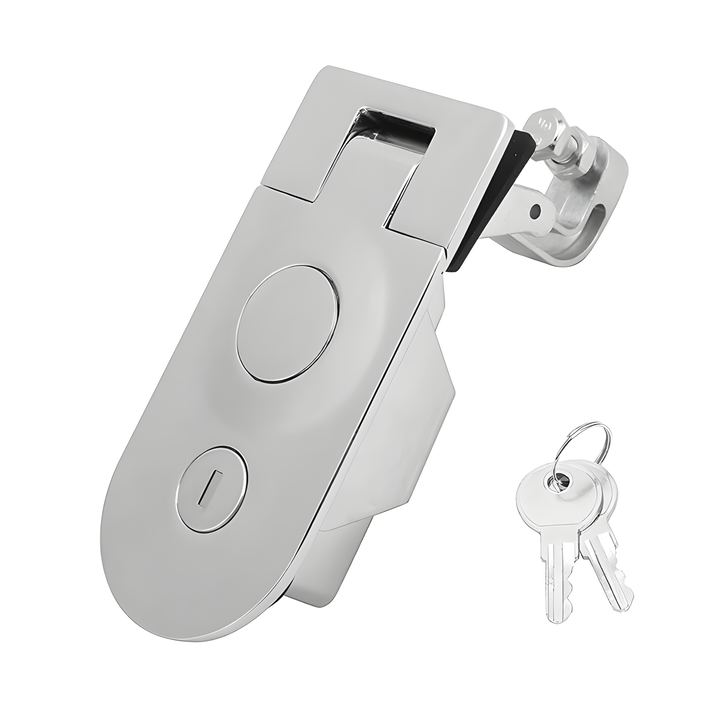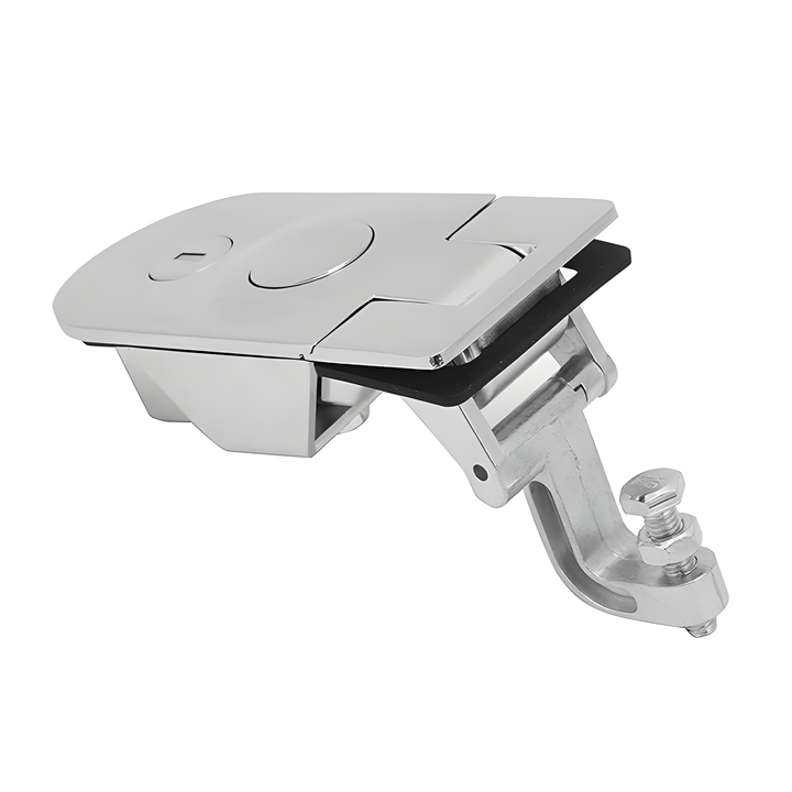 Projetado para aplicações industriais que exigem confiabilidade. O fecho de pressão sobre gatilho escotilha antivibração e compressão oferecem operação suave com abertura lateral direita e esquerda. Fabricado em Zamak ou Aço Inox, combina durabilidade com estética moderna em vários acabamentos.