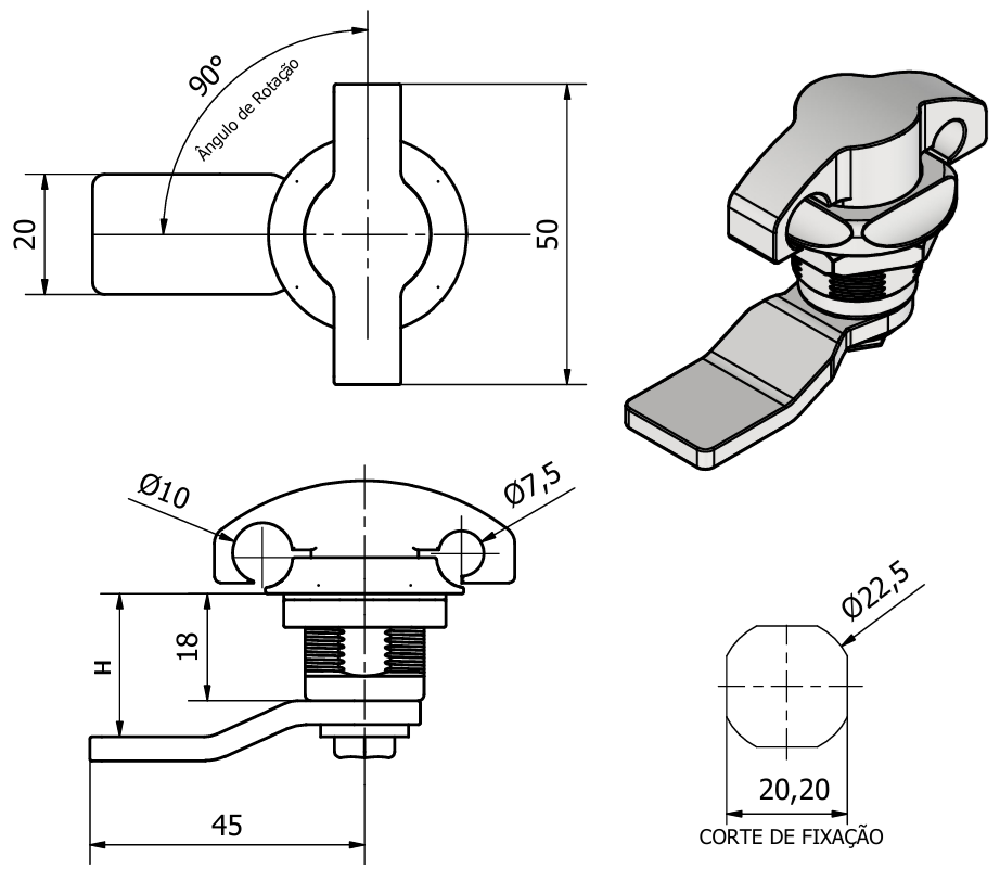 | ZAMAK CROMADO | ZAMAK PRETO | AÇO INOX POLIDO | ALTURA LINGUETA (H) |