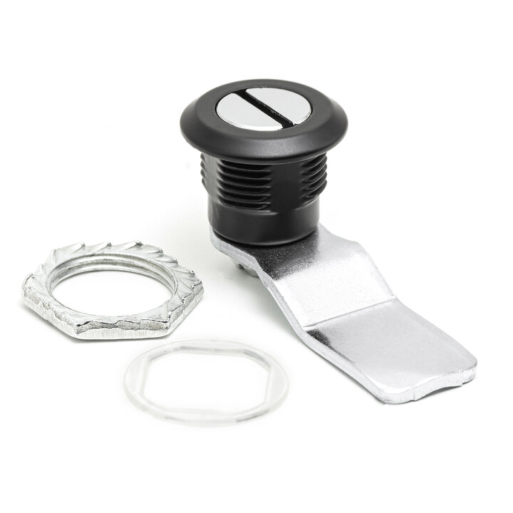 Projetado para aplicações industriais que exigem confiabilidade. O fecho quarto de volta miolo atuador antivibração oferece operação suave com abertura lateral direita e esquerda. Fabricado em Zamak, Aço inox e Nylon, combina durabilidade com estética moderna em vários acabamentos (Cromado ou Preto)