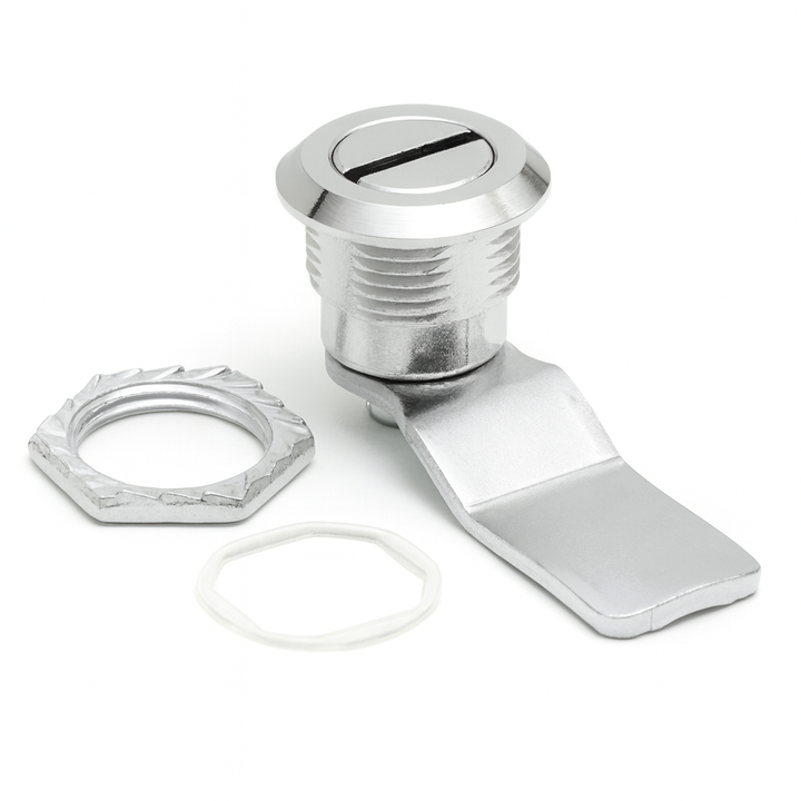 Projetado para aplicações industriais que exigem confiabilidade. O fecho quarto de volta miolo atuador antivibração oferece operação suave com abertura lateral direita e esquerda. Fabricado em Zamak, Aço inox e Nylon, combina durabilidade com estética moderna em vários acabamentos (Cromado ou Preto)