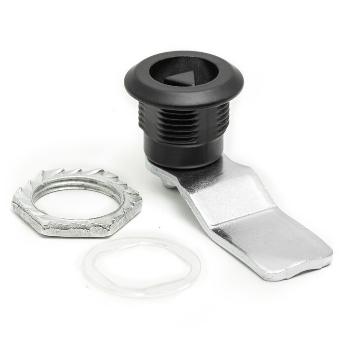 Projetado para aplicações industriais que exigem confiabilidade. O fecho quarto de volta miolo atuador antivibração oferece operação suave com abertura lateral direita e esquerda. Fabricado em Zamak, Aço inox e Nylon, combina durabilidade com estética moderna em vários acabamentos (Cromado ou Preto)