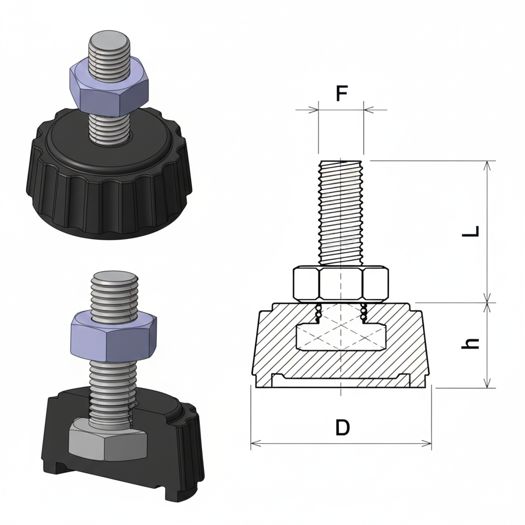 O pé nivelador com base estriada é a solução ideal para garantir nivelamento seguro, absorção de vibrações e fixação firme em máquinas, mobiliário técnico e estruturas industriais. Seu design com ranhuras na base melhora a aderência ao piso, enquanto a rosca metálica ajustável permite regulagem precisa de altura.